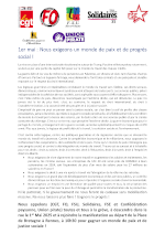 1er mai : nous exigeons un monde de paix et de progrès social ! Manifestation place de Bretagne à 10h30 à Rennes.